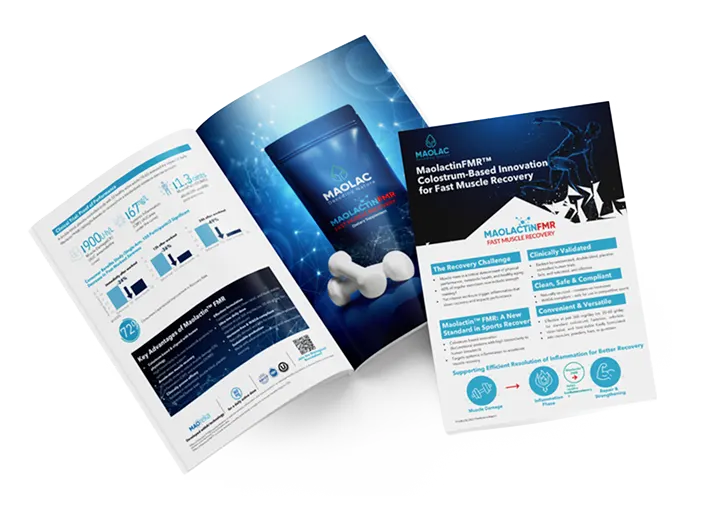 Maolactin™ FMR is a next-generation, colostrum-derived ingredient designed to accelerate muscle recovery, reduce exercise-induced inflammation, and support long-term strength and mobility.